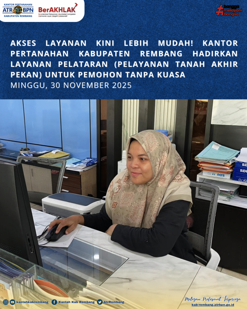 AKSES LAYANAN KINI LEBIH MUDAH! KANTOR PERTANAHAN KABUPATEN REMBANG HADIRKAN LAYANAN PELATARAN (PELAYANAN TANAH AKHIR PEKAN) UNTUK PEMOHON LANGSUNG TANPA KUASA, MINGGU 30/11/2025