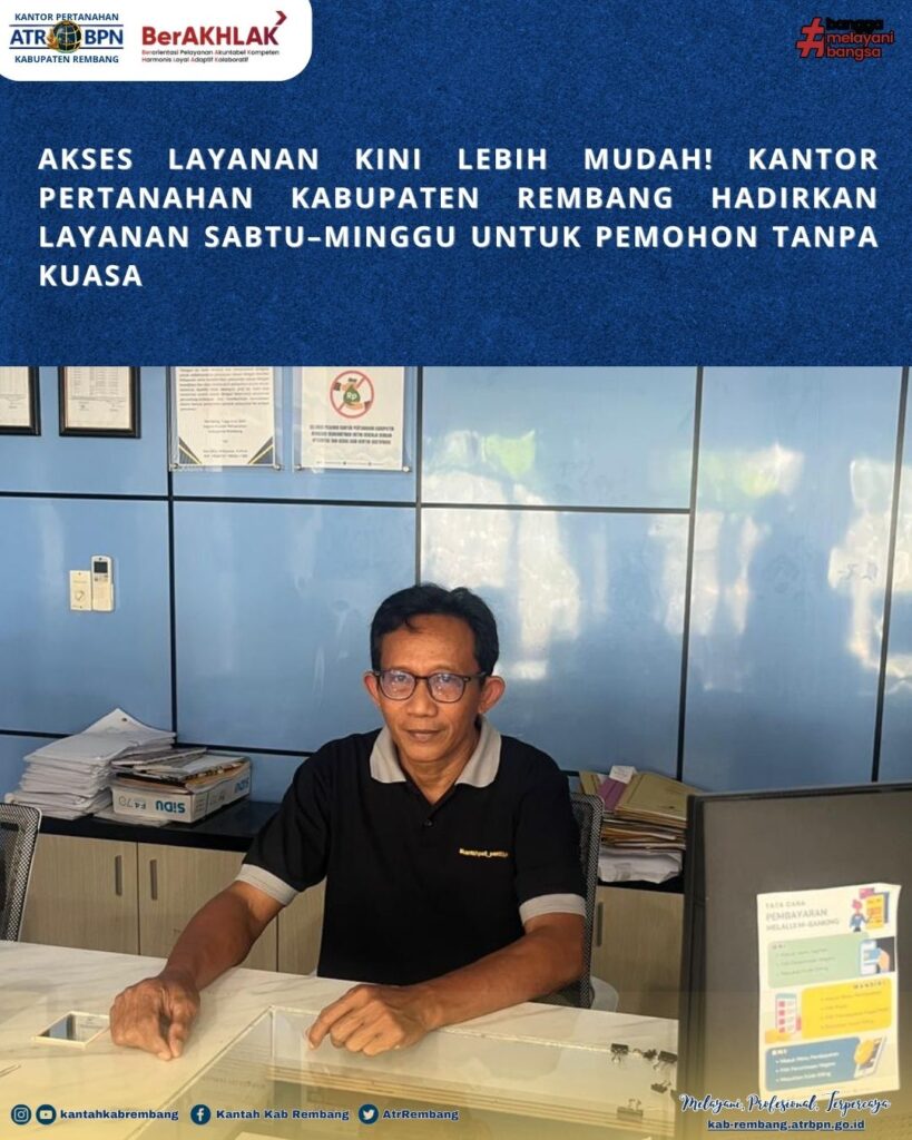 Akses Layanan Kini Lebih Mudah! Kantor Pertanahan Rembang Hadirkan Layanan Sabtu–Minggu untuk Pemohon Tanpa Kuasa. Sabtu 15/11/2025