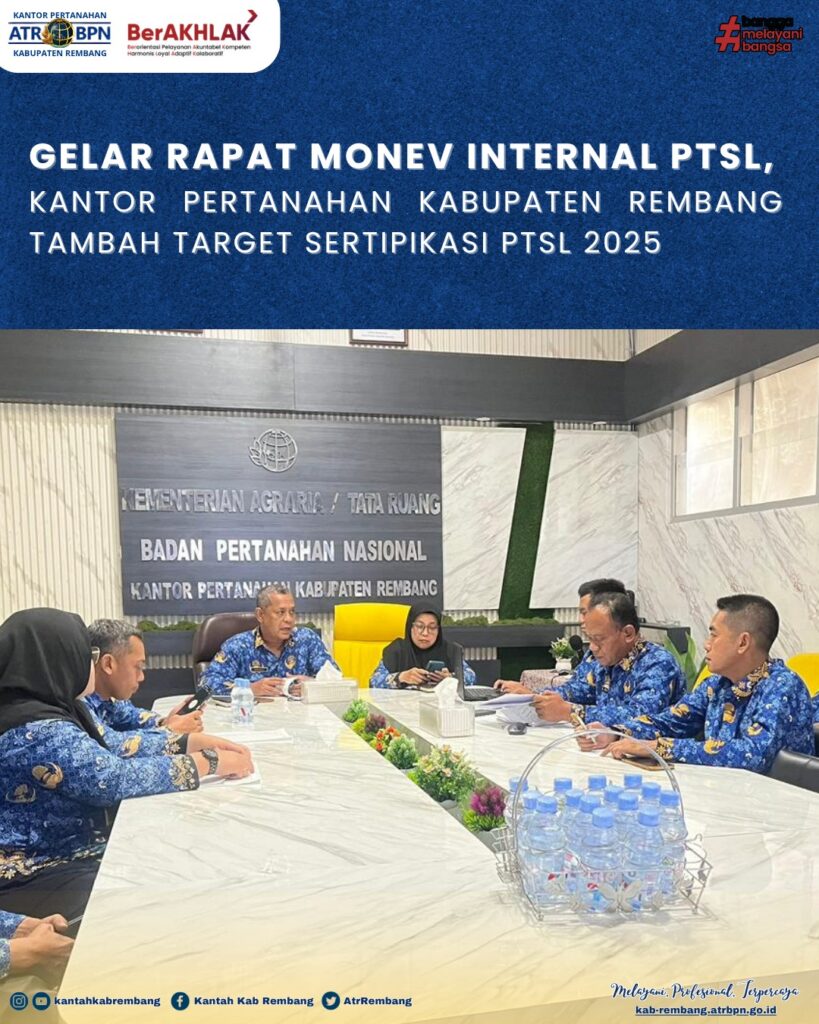 Gelar Rapat Internal Monev PTSL, Kantor Pertanahan Kabupaten Rembang Tambah Target PSTL 2025