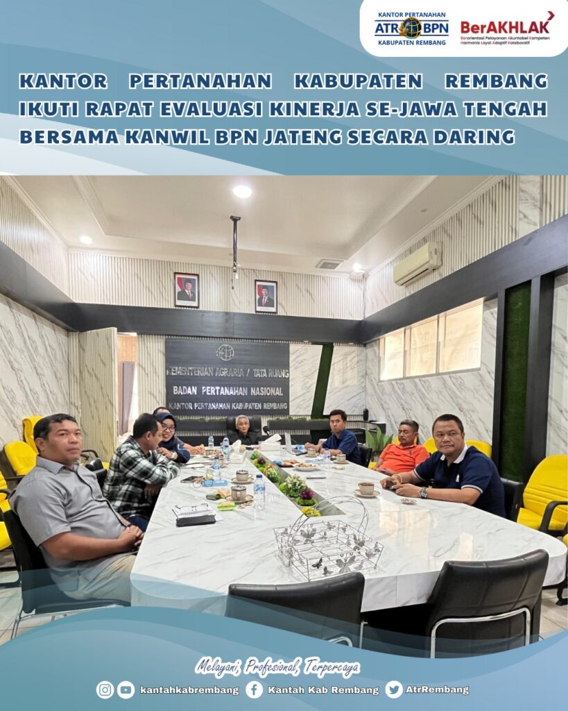 Kantor Pertanahan Kabupaten Rembang Ikuti Rapat Evaluasi Kinerja Se-Jawa Tengah Bersama Kanwil BPN Jateng Secara Daring