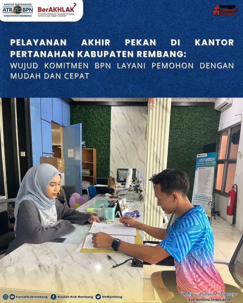 PELAYANAN AKHIR PEKAN DI KANTOR PERTANAHAN KABUPATEN REMBANG, MINGGU 09 NOVEMBER 2025 SEBAGAI WUJUD KOMITMEN BPN LAYANI PEMOHON DENGAN MUDAH DAN CEPAT