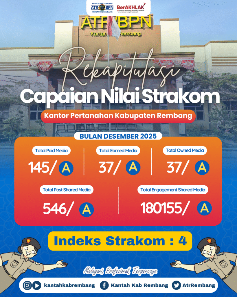 Strategi Komunikasi (Strakom) adalah instrumen penting dalam mendukung pelayanan publik yang prima. Nilai Strakom menggambarkan efektivitas penyampaian informasi, publikasi program, dan keterlibatan masyarakat terhadap layanan pertanahan.