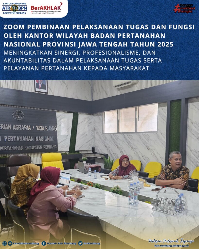 ZOOM PEMBINAAN PELAKSANAAN TUGAS DAN FUNGSI OLEH KANTOR WILAYAH BADAN PERTANAHAN NASIONAL PROVINSI JAWA TENGAH TAHUN 2025 SEBAGAI PENINGKATAN SINERGI, PROFESIONALISME DAN AKUNTABILITAS PELAYANAN PERTANAHAN